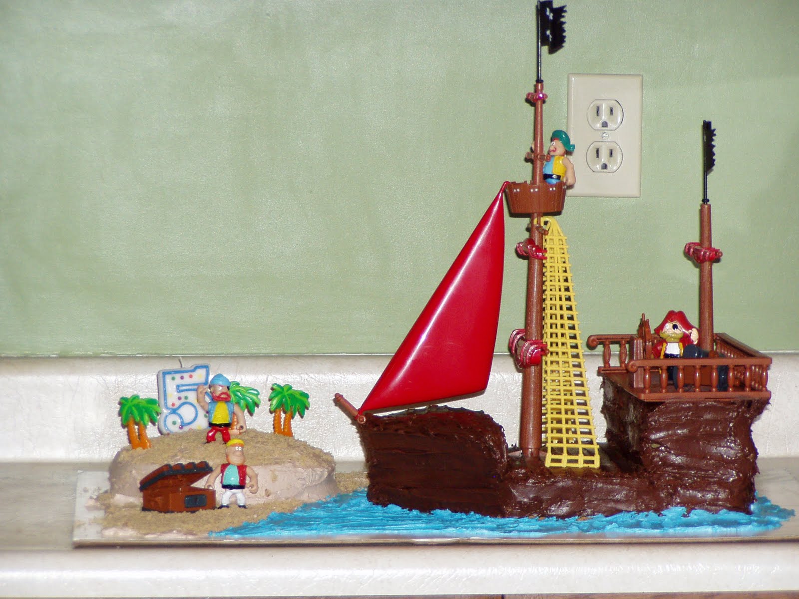 For Luke's 5th birthday, he wanted a pirate party. This was the first time I made the cake myself - and it about got the best of me! I was NOT a pleasant person after working on this cake. I don't even remember how many times I had to redo it. But it turned out okay - if I do say so myself :)